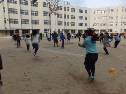 全校児童で取り組みました。次回はさらに難しい技のようです。