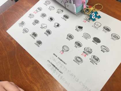 「一汁三菜」という言葉を学び、主食・主菜・副菜を一食の中にいれることで、バランスのよい食事になると学習しました。