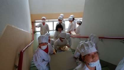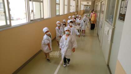 今週から1年生の給食は、自分達で運んでいます。牛乳は、重くて落としてしまうこともあります!