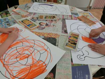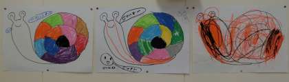 パスを使ってそれぞれのかたつむりに色を塗りました。