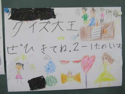 2年1組は「クイズ大王」です。