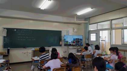 5年生の社会科では「エイサー」や「紅染」等の映像を見ながら、沖縄文化について学習しています。