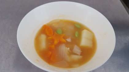 「フレッシュトマトのスープに」には、ハッピー人参が入っています。