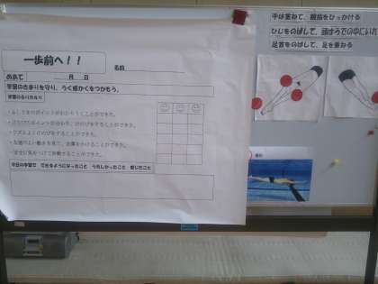 音楽が流れるなか体操したり、水慣れをしたりと2年生からの積み重ねがとても生きていました。