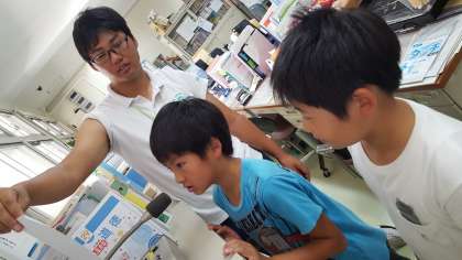 児童会の子どもたちが、校内放送で全校児童に呼びかけています。