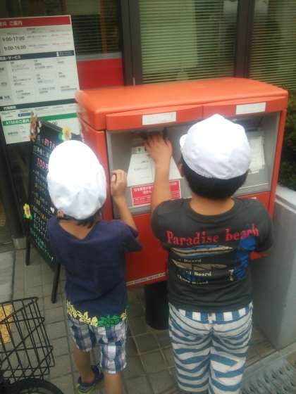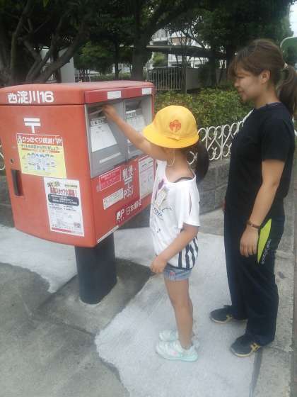 なかよしタイムで書いたハガキをポストへ投函に行きました。