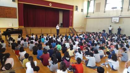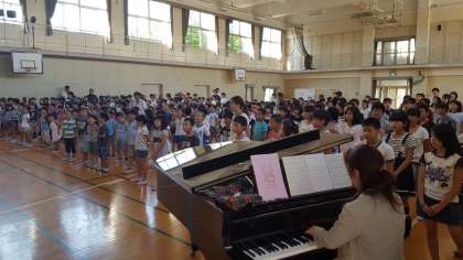 終業式では、1学期を振り返ってと夏休みの過ごし方についての話を聞きました。