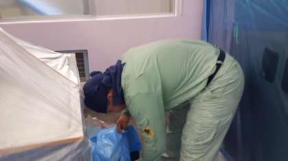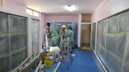 今日も、営繕3班の皆さんが給食室を変身させるために頑張ってくださっています。