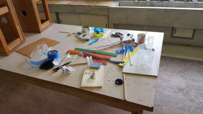 今日は、電動糸鋸も使っての工作制作が進んでいます。