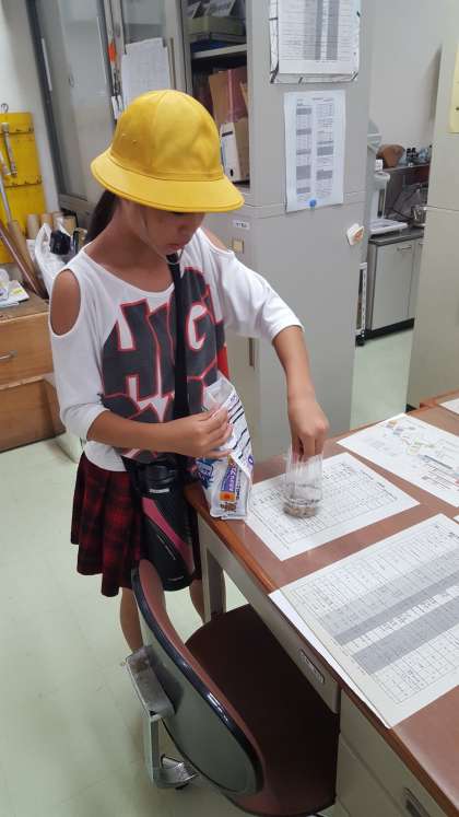 お腹を空かせたカメのために、今朝も飼育栽培員の子どもが、お世話をがんばっています。