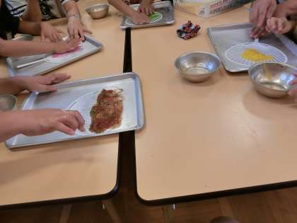 スライム作りは2回目ということもあり、分量もビーカーで上手に量ることができました。自分の好きな花紙の色を選び、それぞれ素敵なうちわができました。
