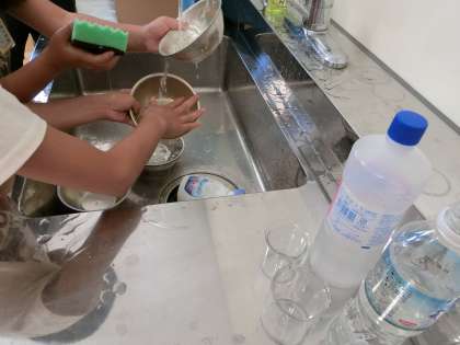 お片付けタイムでは、使ったものを自分たちで洗って片づけまでできました。