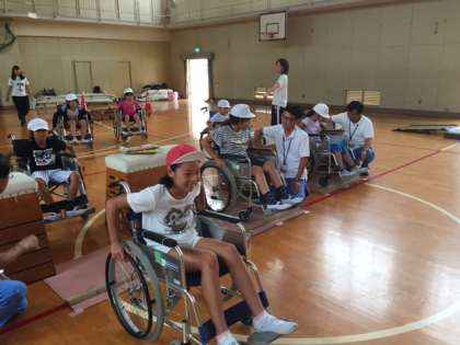 リハビリテーション・センターの方から「車いす」の使用方法や利用者の努力や工夫について教えていただきました。