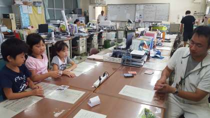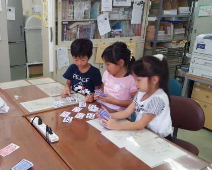 昨日の給食後、学校長は「トランプマジック」を1年生にしました。