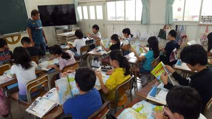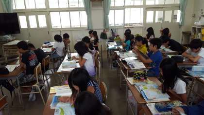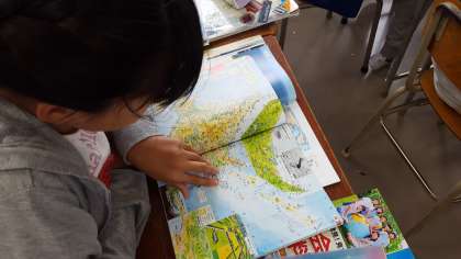 地図帳を見ながら、北海道の湖や離島について学んでいます。