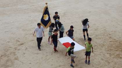 その中で、運動会の開閉会式の練習をしている児童会の子どもたち。