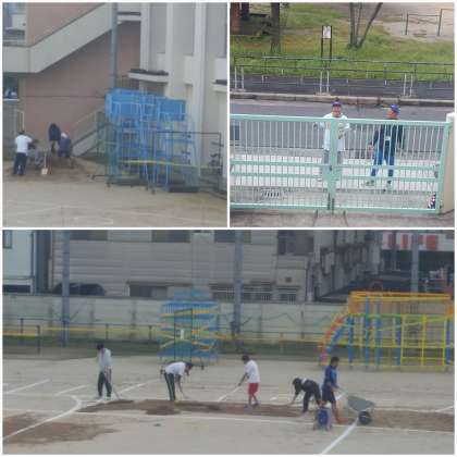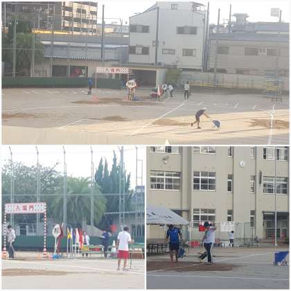 教職員・PTA役員の方々が協力し、運動会の準備に取り掛かっています。