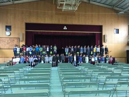 今朝は、リハーサルのため歌島中学校の講堂で歌ってきました。