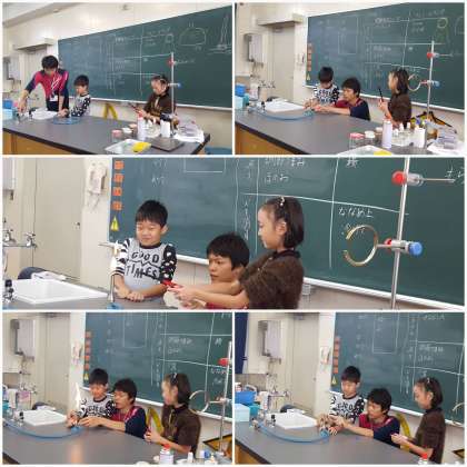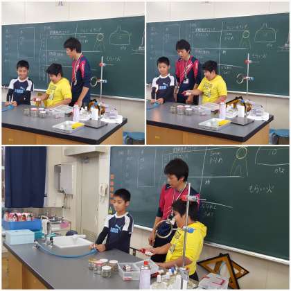 理科室で、ガスバーナーの使い方を学習しています。
