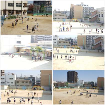 休み時間には、子どもたちだけでなく先生たちも元気いっぱいに運動場で遊んでいます。