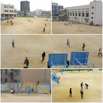 曇天、そして10分という短い休み時間にも関わらず、子どもたちは元気いっぱいに運動場で遊んでいます。
