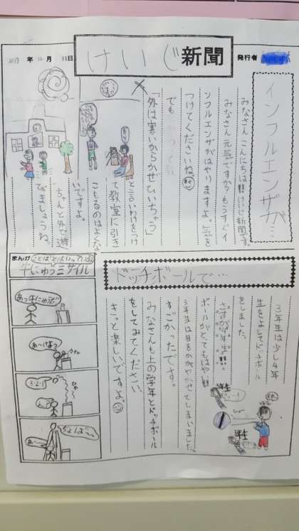 3年生の教室前に、子ども達が書いた新聞が掲示されていました。