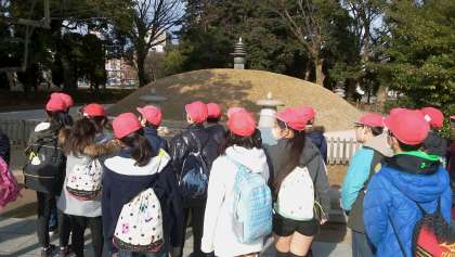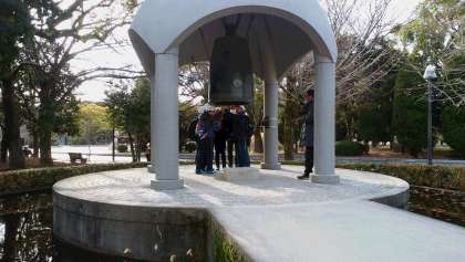 みんなで平和記念公園内の碑をめぐりました。真剣な眼差しで学習しました。