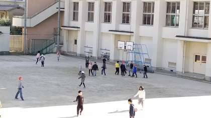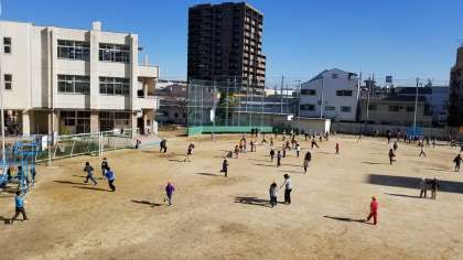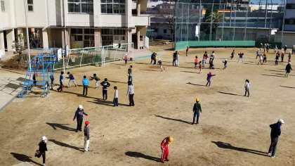 寒風吹きすさぶ中でも、子どもたちは元気いっぱいに走り回っています。
