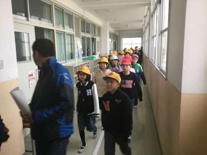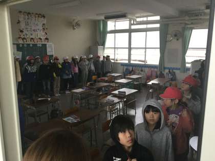 神崎川が決壊したという設定で、全学年が4階に避難しました。