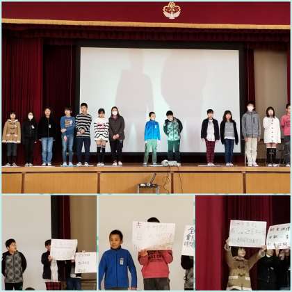 今日の児童集会では、給食委員会と放送委員会が活動報告を行いました。