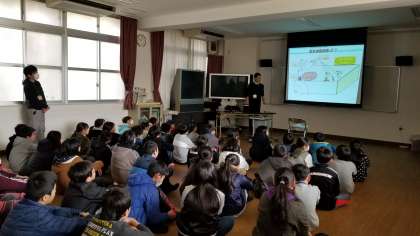 防災の大切さを説明していただいた後、実際に地震体験をしました。