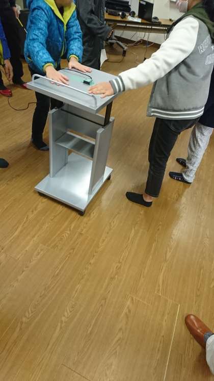 簡易装置を使って子ども達の起こした地震は、震度5でした。