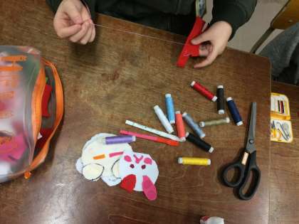 こちらの教室では、フェルトなどを使って小さな小物づくりをしています。