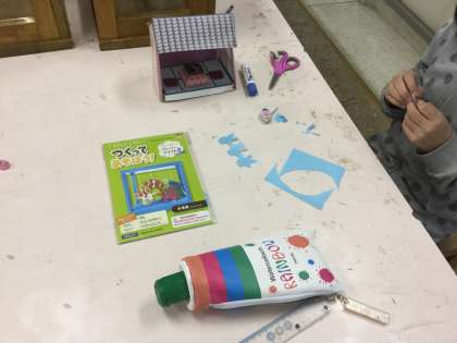図工室では、クラフトクラブのメンバーが紙工作や折り紙・木工に取り組んでいます。