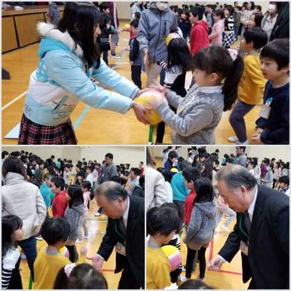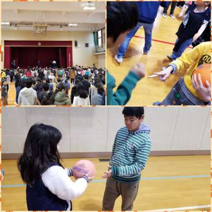 今朝の児童集会は、「じゃんけんボール」というゲームでした。