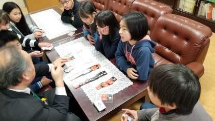 昼休みに6年生が校長室へ遊びに来ています。