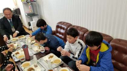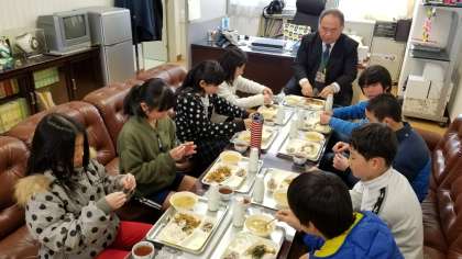 校長先生と一緒に食べる給食は、いつもより美味しく感じます!