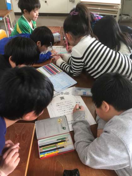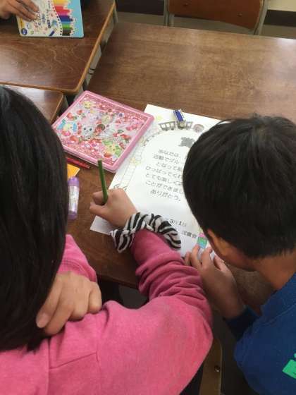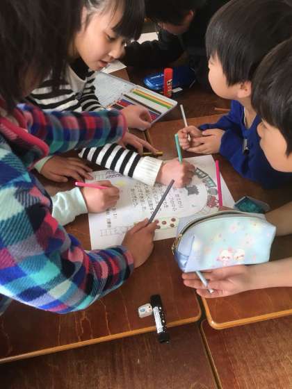 今日の5時間目に、1〜5年生が「卒業お祝い集会」で手渡す色紙づくりをしました!