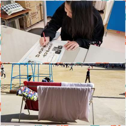 一方、保健室の外では休養用ベッドの布団が干されています。