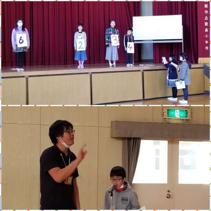 卒業お祝い集会を盛り上げるために、児童会の子ども達が休み時間にも練習に取り組んでいます。
