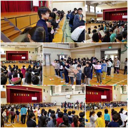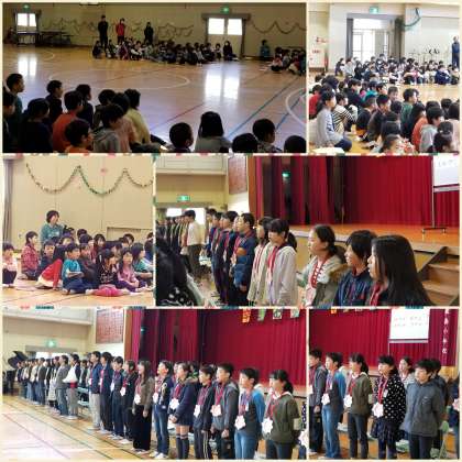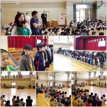 6年生の退場は、4年生の合奏「アフリカンシンフォニー」にのせて・・・。