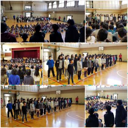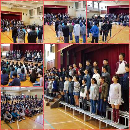 今年度最後の音楽集会は、卒業式で5.6年生が歌う歌を1〜4年生に聴いてもらいました♪