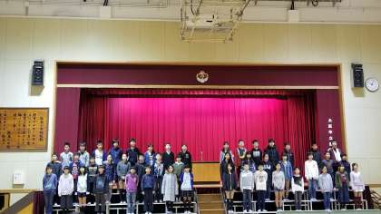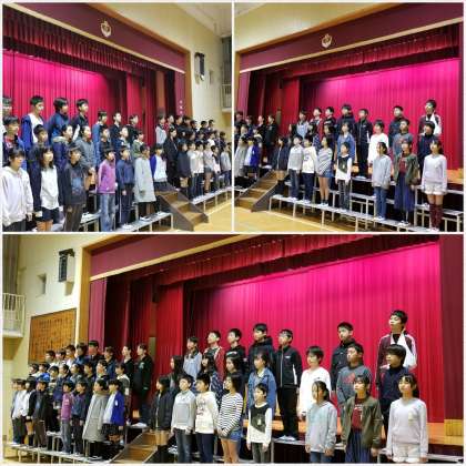 最高学年として、また在校生代表として練習に臨んでいる5,6年生です。