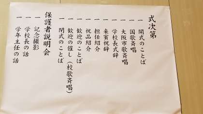 本日の入学式には、「就学通知書」「保護者証」「上靴(保護者・お子様両方)」を必ずご持参ください。