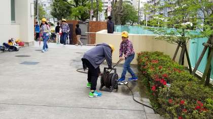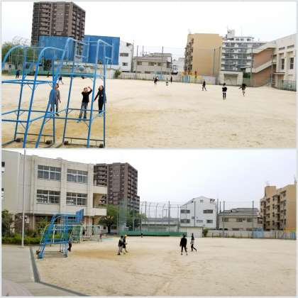 飼育栽培委員会の児童が水やりをしたり、友達とバスケットボールをして楽しんだりと朝からとっても活動的です。