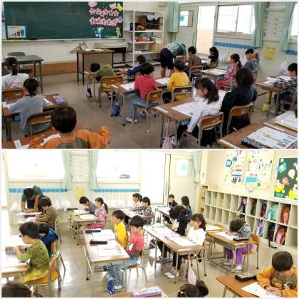 正しい姿勢で、話を聞いたり字を書いたりしています(*'▽')