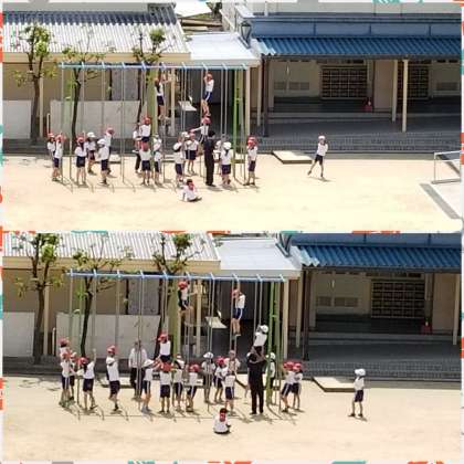 2年生が「のぼり棒」の練習をしています。