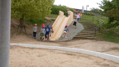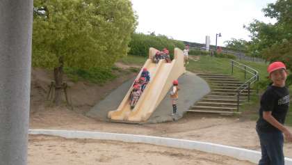 4年生は、鬼ごっこですが、どうやら指尾先生と立花先生が鬼のようです。そして、海野先生の周りには、子どもたちがいっぱいいますね!