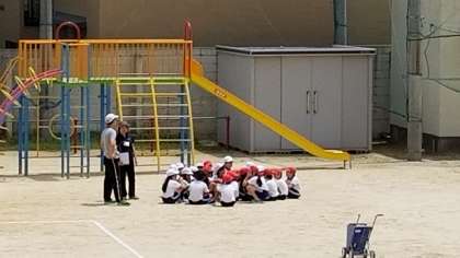 運動場で体育をしていた2年生は、すぐに先生のそばに集まり静かに放送に耳を傾けていました。