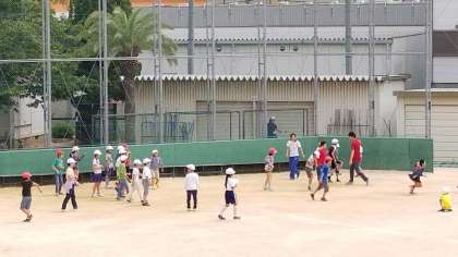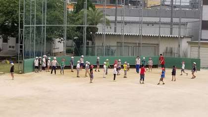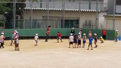 4年生が20分休みを使って、明後日の「親子ドッジ」に向けて猛練習しています。